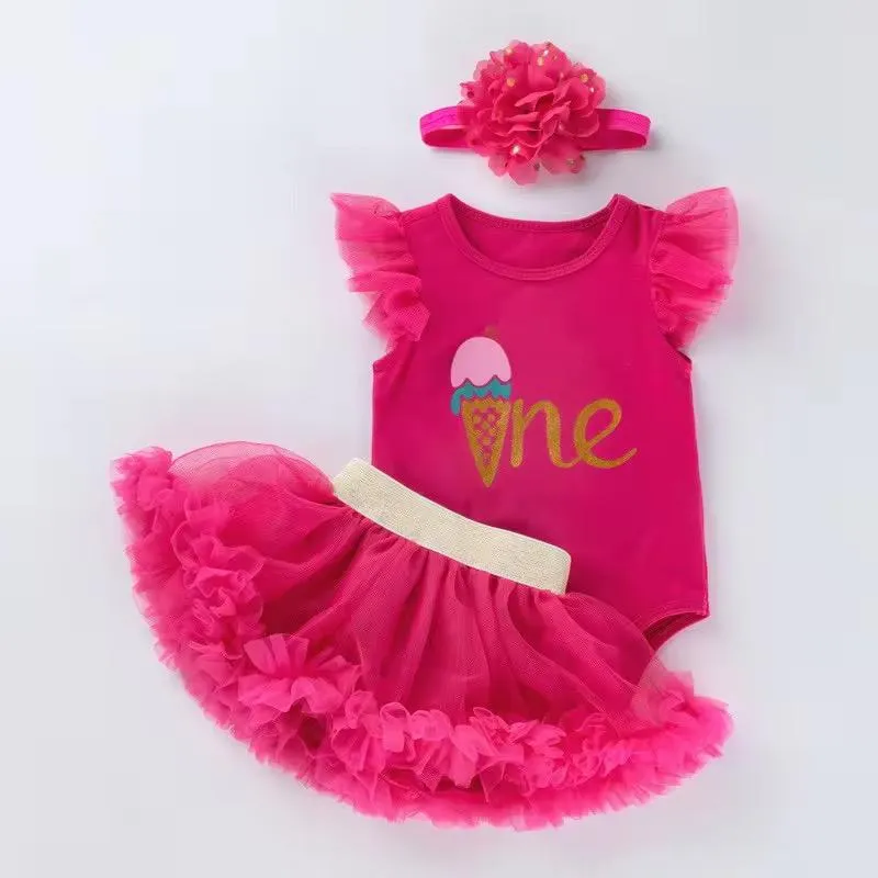 This adorable outfit features a bright pink bodysuit paired with a fluffy tulle skirt, Perfect for b...