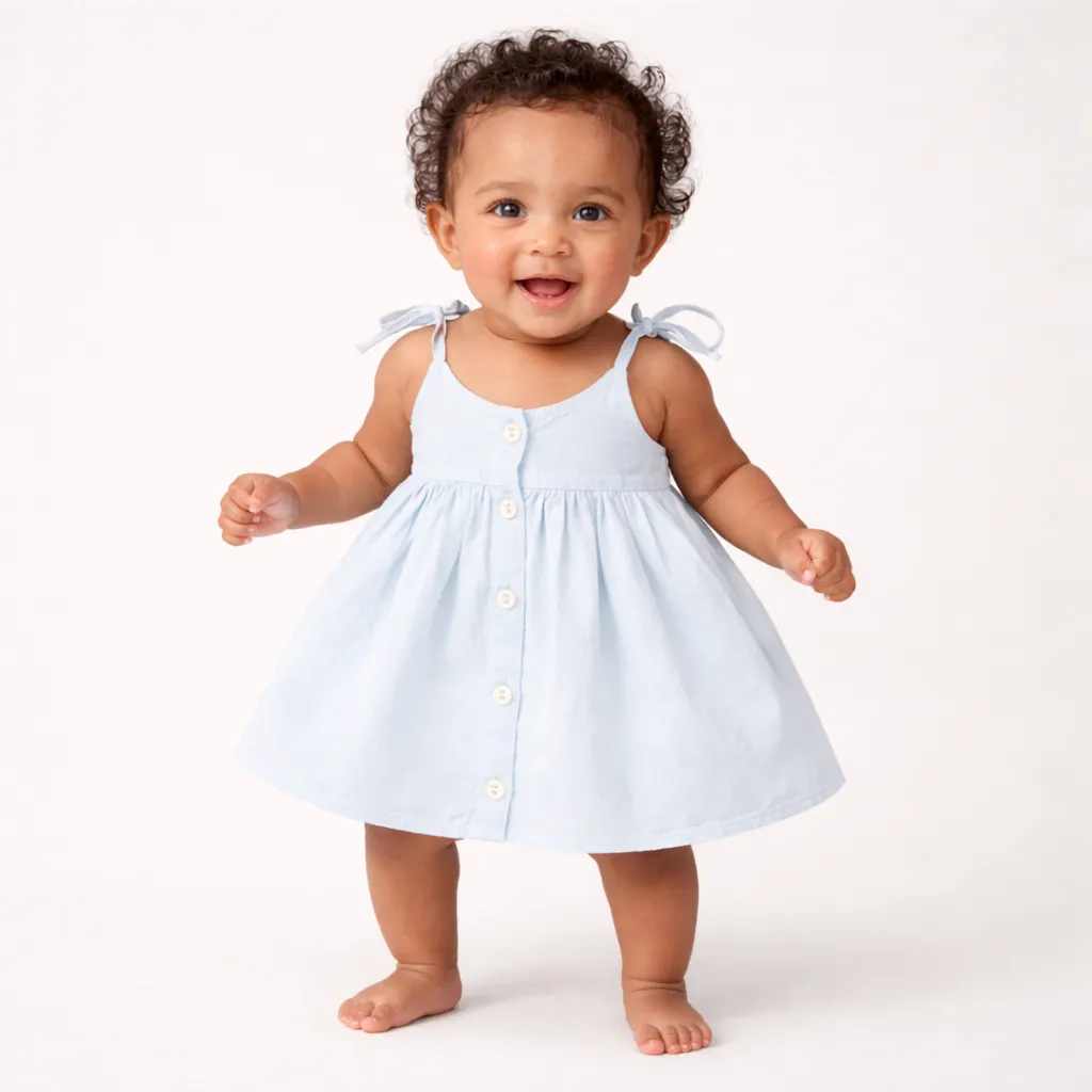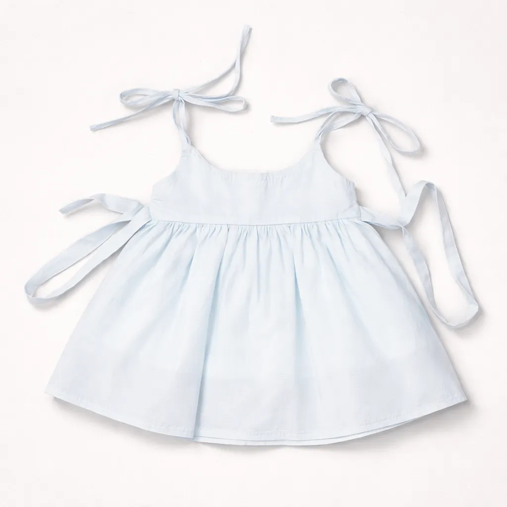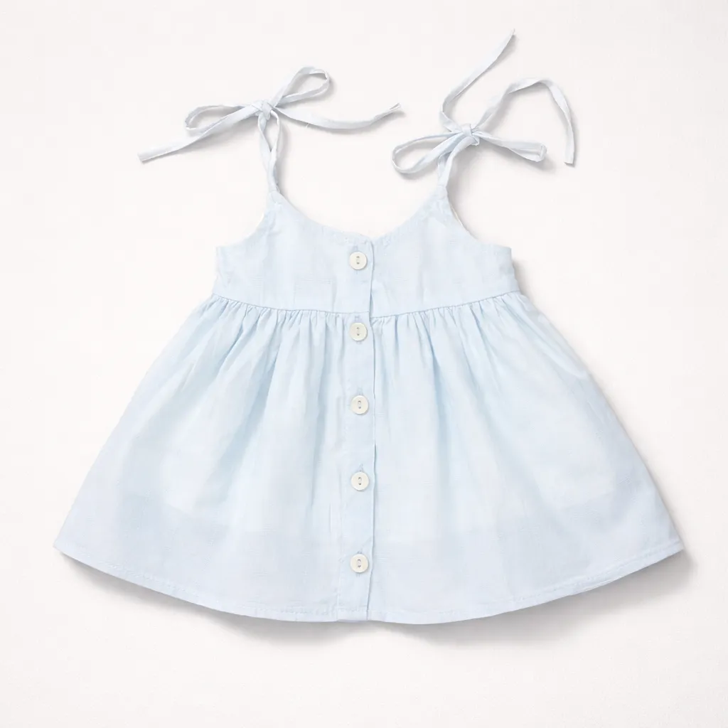 This cute sky-blue baby frock is made with soft, breathable fabric to keep your little one comfortab...