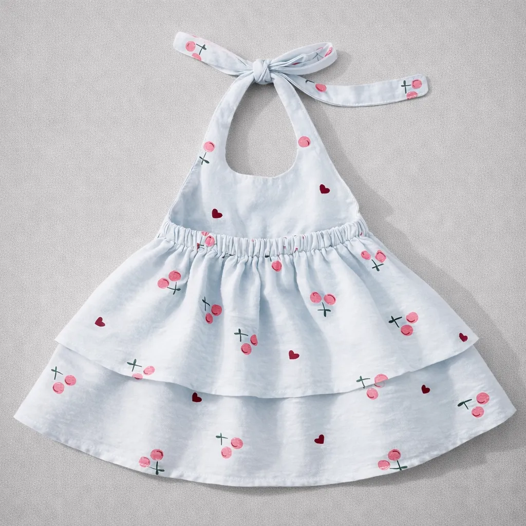 A charming cherry print baby dress crafted from lightweight cotton crepe for breathable comfort. The...