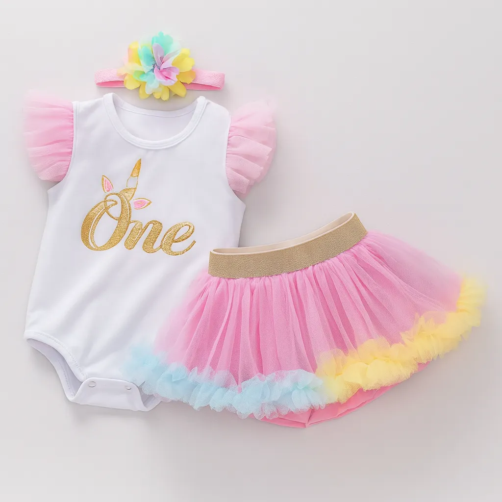 This adorable outfit features a bright pink bodysuit paired with a fluffy tulle skirt, Perfect for b...